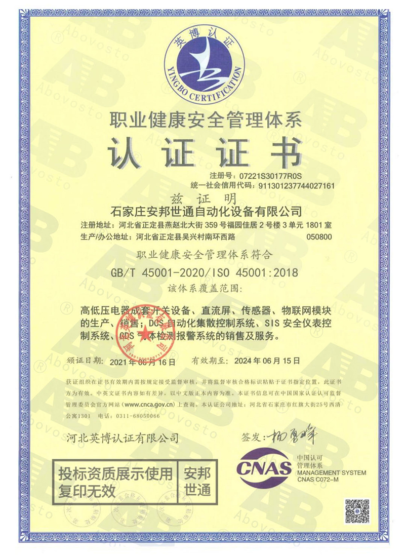 ISO45001:2018職業(yè)健康管理體系認證報告...